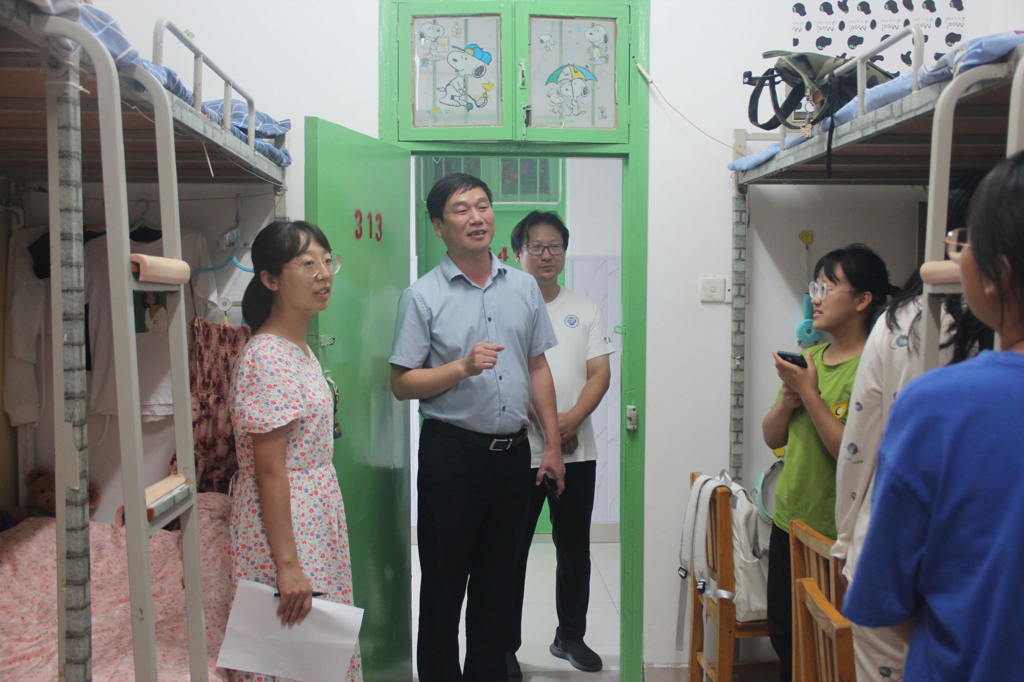 在华苑7号楼男生公寓,刘寒冰嘱咐新生们严格遵守宿舍管理规定,注意宿舍卫生和安全,培养良好的生活作风和行为习惯,营造一个和谐的住宿与学习环境。希望同学们能珍视共同来到物理学院求学的缘分,和睦相处,团结互助,珍惜学习时光,认真学习专业知识,以更加饱满的状态,践行“复性正心,格物致知”院训,在美丽的校园中收获宝贵的财富。