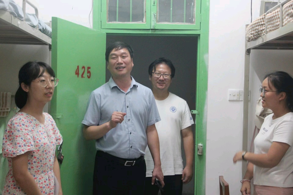 新生住宿和生活情况,引领新生尽快适应新生活新环境,9月5日晚,学院党委书记张慧、副书记刘寒冰、副院长魏高明、李新营、刘名果和新生辅导员刘华云一行分别前往华源、南苑学生公寓走访慰问新生。