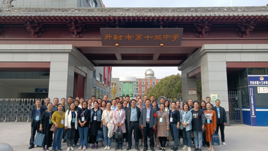 继续教育办公室主任向兵老师带队,“国培计划-2023”初中物理省级骨干教师培训团队的近50位学员来到开封市第十三中学开展观摩交流参观活动。