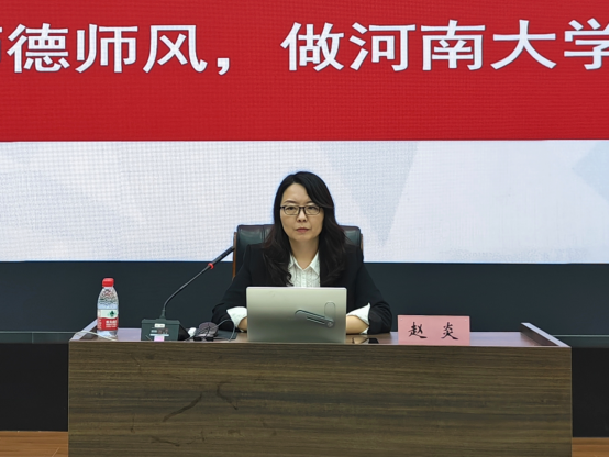 好老师”为主题,对标“教育家精神”,从“师德师风的重要性”“高校师德师风规范要求”和“做什么样的好老师”三个方面深入剖析了师德建设的宏观背景和新时代高校师德建设的形势与任务。对师德师风建设的相关文件规定进行了深入解读,结合近年来教育部公开曝光的高校师德失范典型案例,政策引导与警示教育相结合,进一步明确了高校教师师德建设的规范和遵循,阐释了修身养性、涵养师德的途径与意义。她指出,要坚持对师德违规问题“零容忍”,严格落实“一票否决”制,常抓不懈落实落细各项工作任务。
