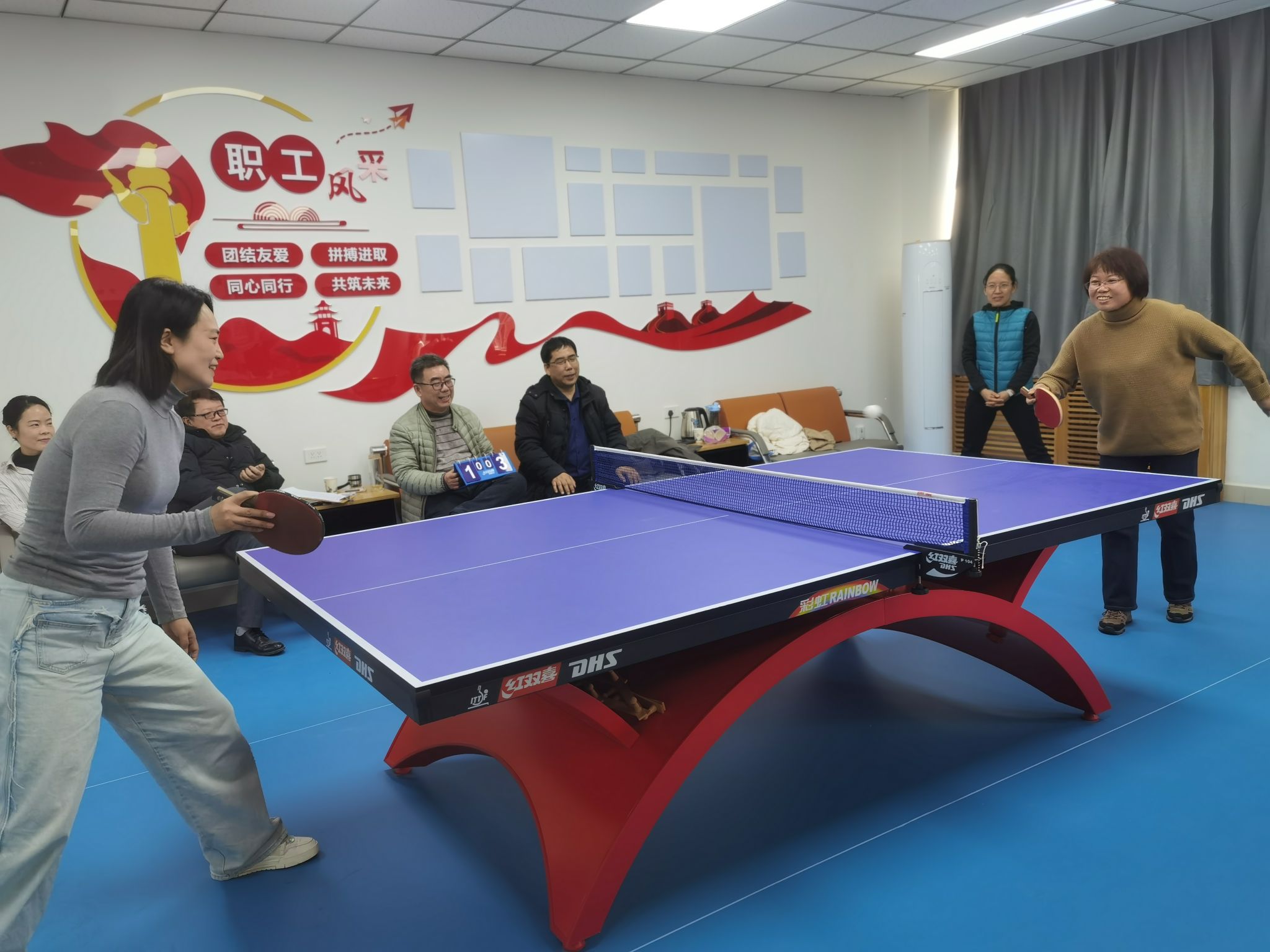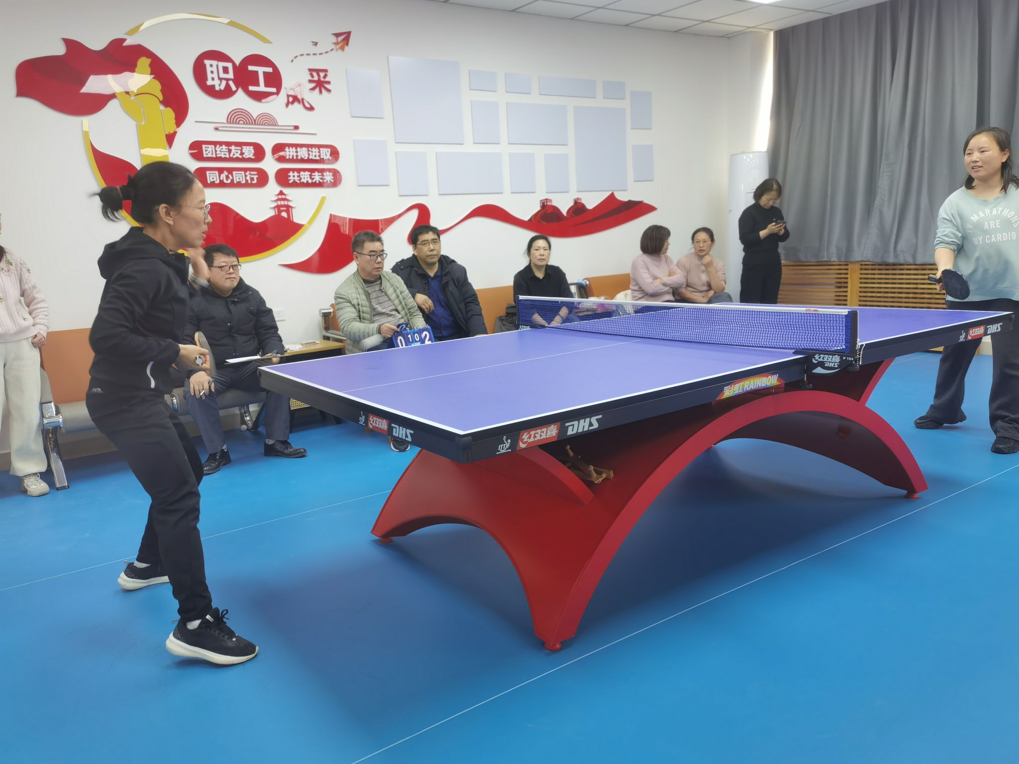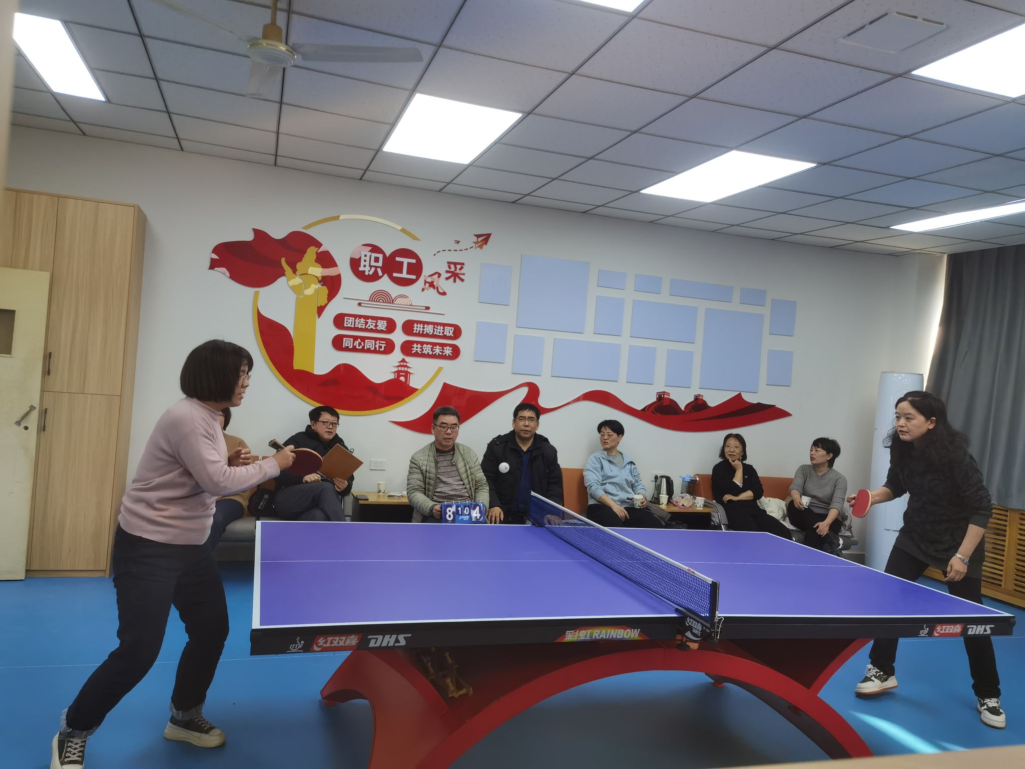 在院工会活动室开展女教职工乒乓球比赛。