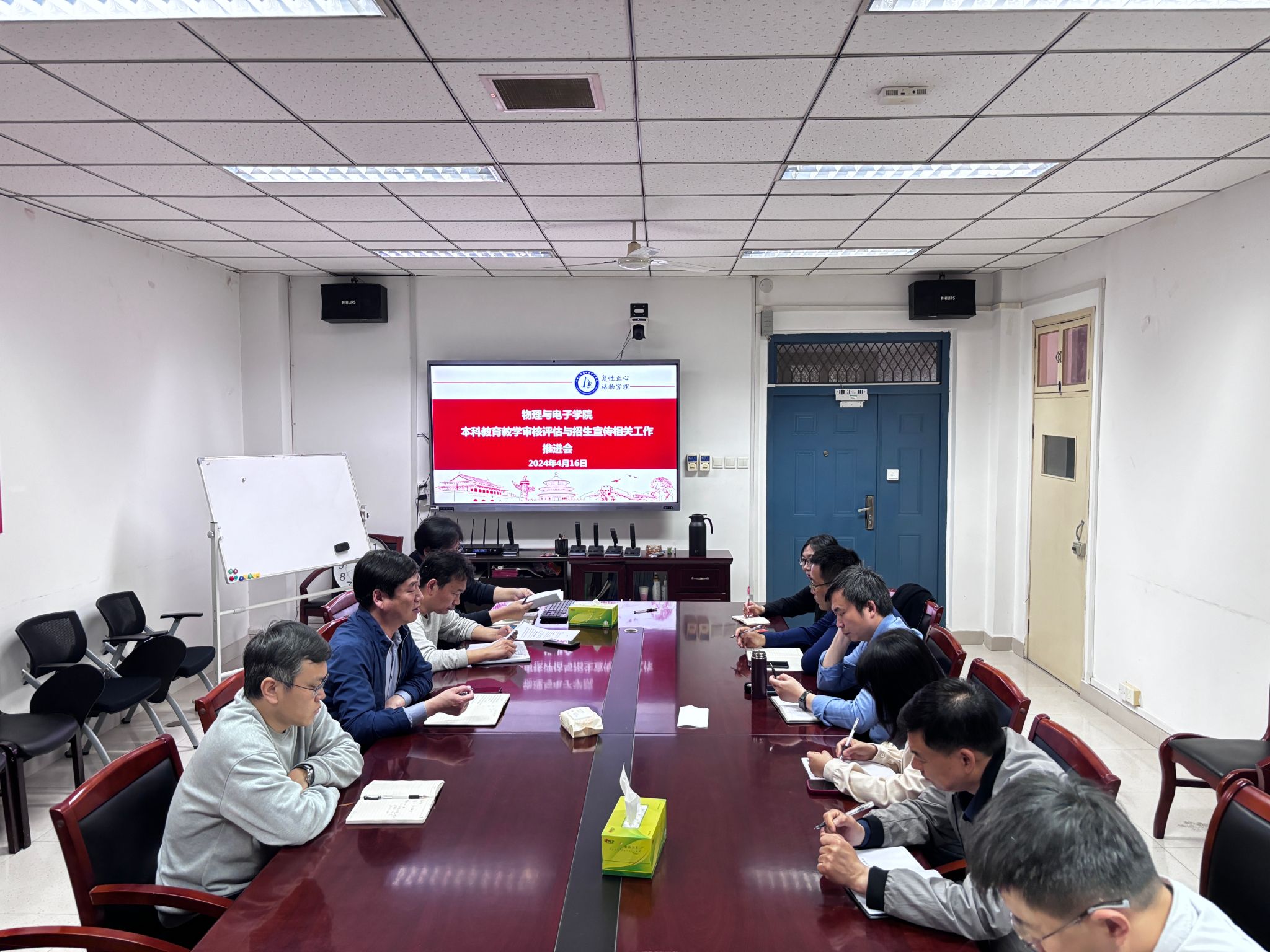 于2024年4月16日上午在物理楼A座311会议室召开工作推进会。学院党委书记张慧,副院长李国强、李新营、刘名果,各基层教学组织负责人和教师代表参加会议。会议由刘名果主持。