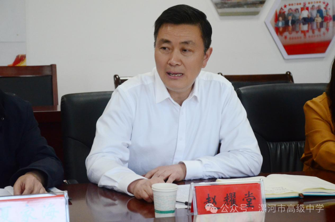 各位领导的莅临进行了欢迎致辞,同时介绍了漯河高中学校历史、师资状况、办学成绩等情况,并就实习就业工作发表建议。
