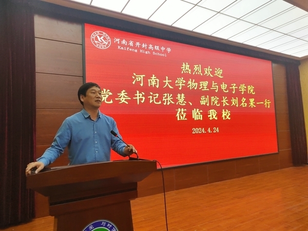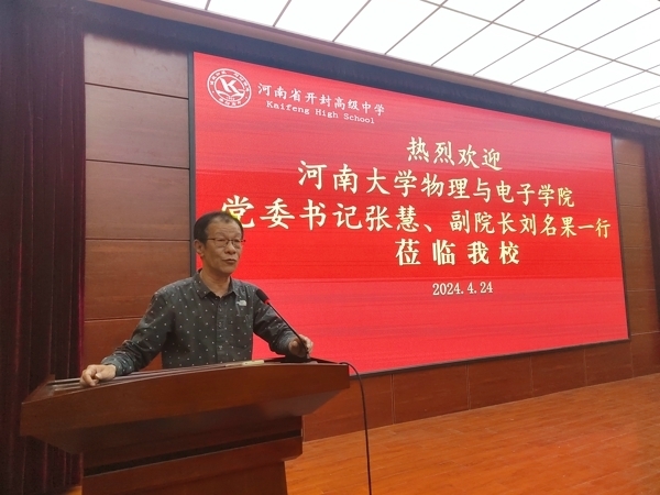 党委书记张慧、副院长刘名果一行五人赴开封高中,为高三的学生家长进行了一场精彩的高校宣传活动。开封高中督导室主任苏新明进行了热情的接待。