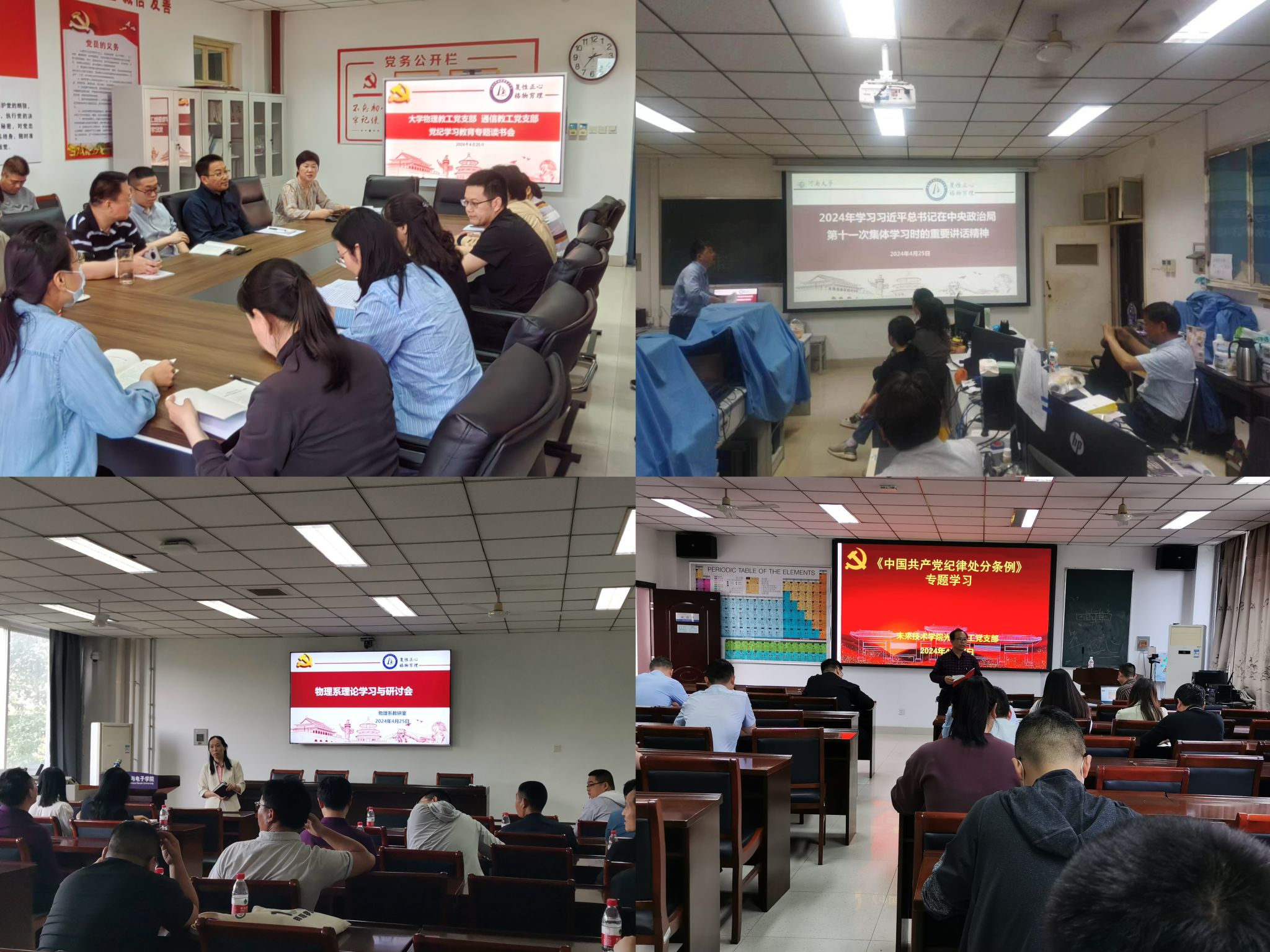 分别在B座304、A座313会议室,线上参加学校党纪学习教育专题读书班集体学习会议。下午,各党支部、系室分别组织开展了主题党日和自学,党员同志逐章逐条、通读精读《条例》全文,全面学习各项纪律规定、领悟主旨要义。