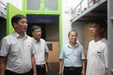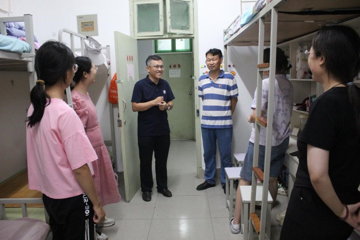 新生的生活情况,帮助新生尽快适应大学生活,2024年9月5日下午,学院党委书记张慧、执行院长李国强、党委副书记刘寒冰,副院长李新营和副院长魏高明,辅导员李瑞光、刘华云一行前往华源、南苑学生公寓走访慰问新生。