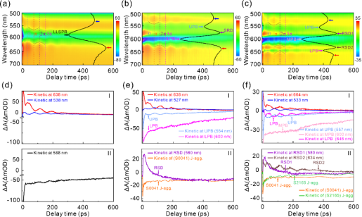 等离激元-激子强耦合作用的研究中大多基于单一激子态,强耦合作用所产生的杂化态(量子比特态)只有两个,难以满足基于多量子比特的量子信息处理需求。由此,进一步研究和开发等离激元与多个不同激子态之间的强耦合作用理论模型及实验平台非常重要。刘仁明教授团队在理论研究基础上(Phys. Rev. B 103, 235430 (2021)),综合利用格林函数、海森堡运动方程及数值计算等方法构建了等离激元与多个不同激子态之间强耦合作用的量子力学理论模型,实现了对等离激元-多个不同激子态强耦合系统吸收光谱响应、能量色散关系等基本属性的准确描述。同时,采用静电组装技术制备了Au@Ag NR/S0041@S2165@2278 J-aggregates杂化系统,在实验上成功展示了等离激元与三个不同激子态的室温强耦合作用,并利用飞秒激光超快泵浦-探测技术研究了该强耦合系统的瞬态吸收特性。研究发现,强耦合作用所产生的杂化态与金属纳米谐振腔的声学声子振荡之间具有相互调控作用。相关研究不仅为基于等离激元共振研究多模杂化及多量子比特操控提供了有力的理论工具,同时也为基于等离激元-多激子态强耦合作用研究超快能量传递、开发超快等离激元及声子器件等提供了良好平台。